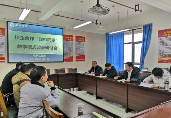 为了深入推进产教融合、校企合作“双师同堂”人才培养模式,同时进一步推进课堂教学改革,增强课堂教学效果,不断提高应用型人才培养质量。2020年12月11日,Bsports必一体育电子工程系在江北校区逸夫科技楼B702举行校企合作“双师同堂”教学模式改革研讨会。电信公司经理陈守满教授、Bsports校外示范性实践教学基地以及双师课程合作企业雷斌经理、电子工程系相关教师参加了本次专题研讨会。