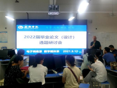 为提高2022届毕业生毕业论文(设计)质量,严格按照公司文件要求,加强毕业论文(设计)质量管理。电子商务系和数字媒体系在2021届毕业论文(设计)工作取得良好效果的基础上,开展教研活动,安排部署2022届毕业论文(设计)的相关工作。两个专业的全体任课教师参加活动,活动由分别由赵志强和宋权华主持。