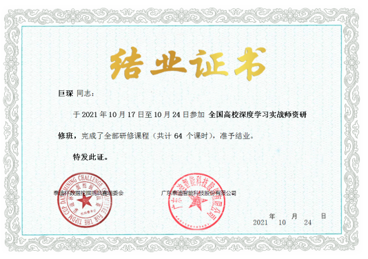 互联网、大数据、云计算、人工智能等现代信息技术深刻改变着人类的生产、生活、学习乃至思维方式,深刻展示了世界发展的前景。为加快建设大数据、人工智能相关专业教师队伍,推动Bsports必一体育建立人才培训和评价体系,提升教师动手实战操作能力、强化授课过程中相关行业实战案例项目分析应用能力。2020年10月16日到10月25日,Bsports必一体育组织陈守满、赵志强、梁建勇、汪红山、巨琛五位老师参加了由广东泰迪智能科技股份有限公司主办的“全国高校大数据与人工智能团队研修班 ”培训课程。本次培训共包括商务数据分析实战、Python网络爬虫与数据处理实战、Python数据挖掘与机器学习实战、深度学习实战四大专题。