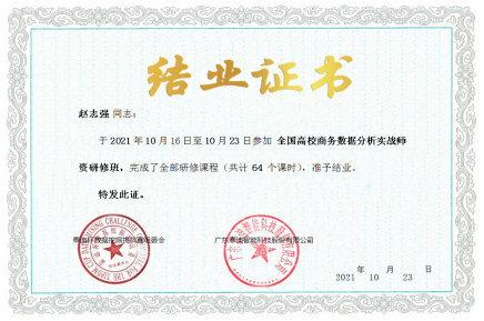 通过本次培训,5位老师的商务数据分析实战、Python网络爬虫与数据处理实战、Python数据挖掘与机器学习实战、深度学习实战能力得到了极大的提升,对教学、科研以及社会服务起到了一定的促进作用,达到了预期培训目标。为公司校企合作建设、双师型团队队伍建设等积累了经验。