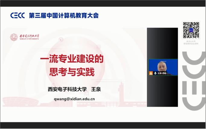 西安电子科技大学副董事长王泉教授,以“一流专业建设的思考与实践”为题带来精彩报告。主要介绍了关于一流专业的定位和高质量发展的一些思考,分享了西安电子科技大学针对这些问题进行的“六新”探索,并结合信息技术类一流专业建设和工程教育专业认证实践,探讨了员工能力培养和员工评价改革的相关内容。
