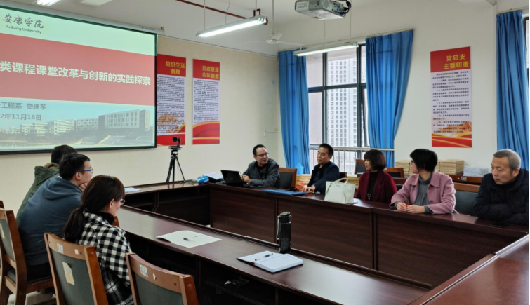 第二阶段,11月16日下午电子工程系、物理系专业教师就参加虚拟教研室活动的内容,结合公司电子信息工程专业现状进行讨论交流。丁礼磊首先介绍了电子信息工程专业课程建设与改革情况,并提出目前电子信息工程专业相关教学成果较少,专业建设和课堂教学改革深度不够等现实问题。然后老师们针对电子信息工程专业课程教学改革中的具体问题进行了深入交流,并针对自己在教学过程中遇到的问题和一些好的经验做法进行了分享交流,老师们积极性很高,活动气氛热烈。丁礼磊希望各位老师适应当前高等教育形势,树立课程改革意识,日积月累,持续改进;将电子社团、员工竞赛和教学改革有机结合,形成联动效应,提高教学改革效果,提升人才培养质量。