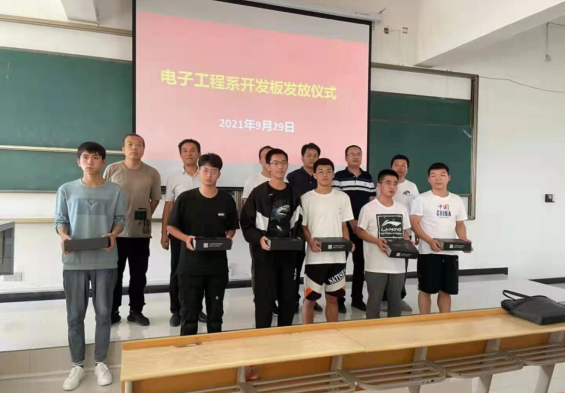 接下来,在同学们的期盼中,与会的领导和老师们为员工发放了FPGA开发板,并由丁礼磊老师就开发板是什么、如何使用开发板、如何充分利用开发板提高动手实践能力等做了详细介绍。