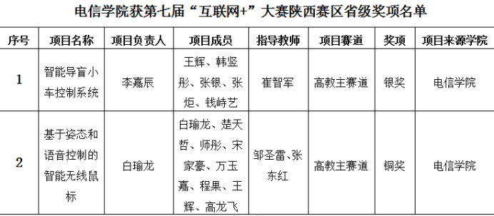 日前,陕西省教育厅办公室发布了《关于公布第七届中国国际“互联网+”老员工创新创业大赛陕西赛区获奖名单的通知》,Bsports必一体育有2个作品获奖,崔智军老师指导的《智能导盲小车控制系统》获得高教主赛道银奖,邹圣雷老师指导的《基于姿态和语音控制的智能无线鼠标》获得高教主赛道铜奖,这也是公司首次在“互联网+”大赛省赛高教主赛道中获得银奖。
