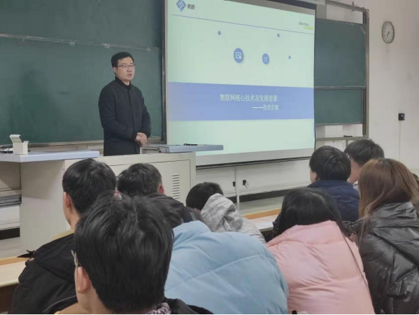接着,由广东粤嵌科技有限公司高级工程师于高波从物联网核心技术、物联网产业链发展现状、物联网技术发展趋势、物联网人才需求等几个方面详细介绍了物联网行业的发展情况。同时重点讲解了RFID技术、无线通信技术、传感器技术、嵌入式系统等物联网领域的核心技术,使同学们明晰了物联网行业相关技术的广泛应用和发展。