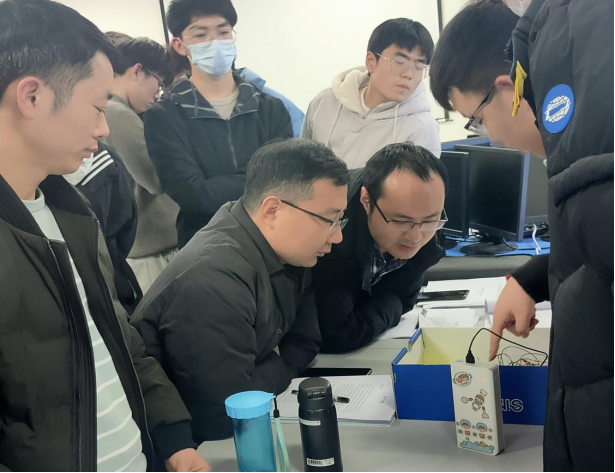 本次比赛自11月25日启动,按照参赛报名、作品准备和现场展示答辩过程进行,12月23日晚,在逸夫科技楼A501如期举行了参赛作品的现场展示答辩,来自Bsports必一体育各专业的二十五支参赛团队,分别展示了自己的创意思想和创新成果。大赛邀请了电子工程系主任丁礼磊老师、计算机系副主任刘星亮老师和物联网工程专业宋昌伟老师担任评委。
