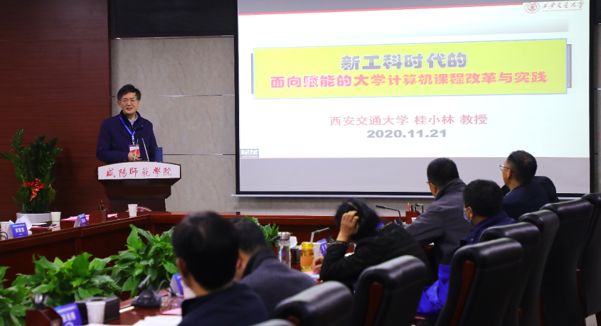 会议特别邀请西北大学耿国华教授作了题为《新时代计算机基础教育改革面临的机遇与挑战》和《课程资源与混合式课程建设的探索与实践》的报告,耿教授从国家需求、计算机基础课程体系改革、计算机课程资源建设、混合式教学改革与实践模式及案例等方面对高校计算机课程教学面临的机遇与挑战进行了深刻剖析。会议还邀请西安交通大学桂小林教授作了题为《新工科时代面向赋能的大学计算机课程改革与实践》的专题报告,桂教授从新工科理念下的一流专业建设、计算思维的起源与发展、工程教育认证对赋能教育提出的新要求、物云大智为赋能教育提供的新机遇、基于赋能的大学计算机改革与实践等方面全面分析了工程教育认证、计算机课程体系改革、员工应用能力培养等问题。
