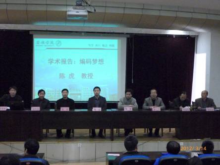 揭牌仪式结束后,陈虎教授做了题为“编码梦想”的学术报告,陈虎教授就“智能陈桥五笔”软件的开发思想和关键技术做出深入浅出的讲解,对我系计算机专业员工的学习兴趣起到了极大地激励作用,也深受电信系师生的欢迎!
