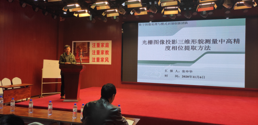 本次报告中,张申华博士结合自己的研究课题,介绍了光栅图像投影三维形貌测量中高精度相位提取的关键技术,针对如何提高相位质量问题,介绍了从测量系统非线性补偿、光栅图像盲去噪、反光及运动四个方面进行相位高精度提取的方法和途径。