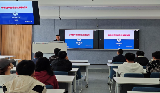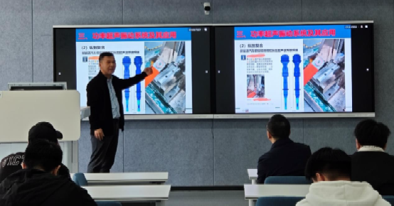 许龙教授结合自己的研究方向从超声技术的简介、功率超声振动系统的组成等方面做报告,介绍了各类超声振动系统的研究进展及其在超声清洗、超声加工、超声焊接、超声手术刀等方面的应用。报告会上,公司师生对报告中感兴趣的内容与专家进行了积极交流讨论。