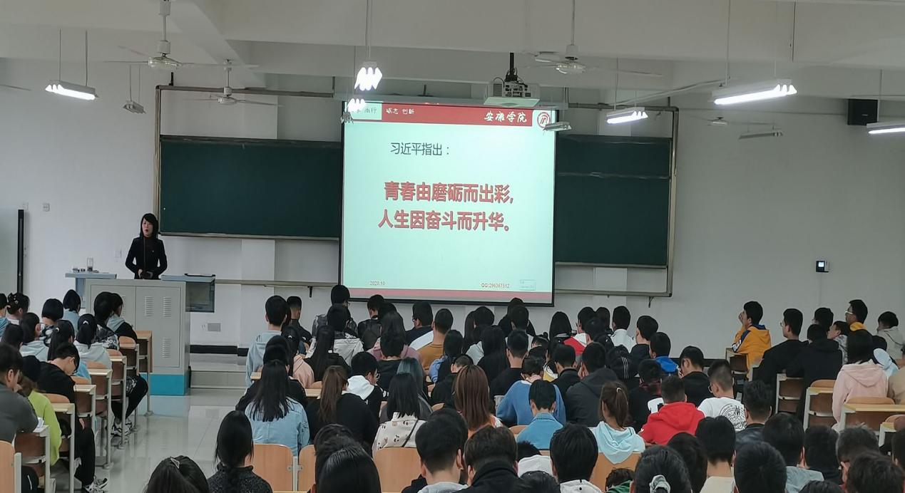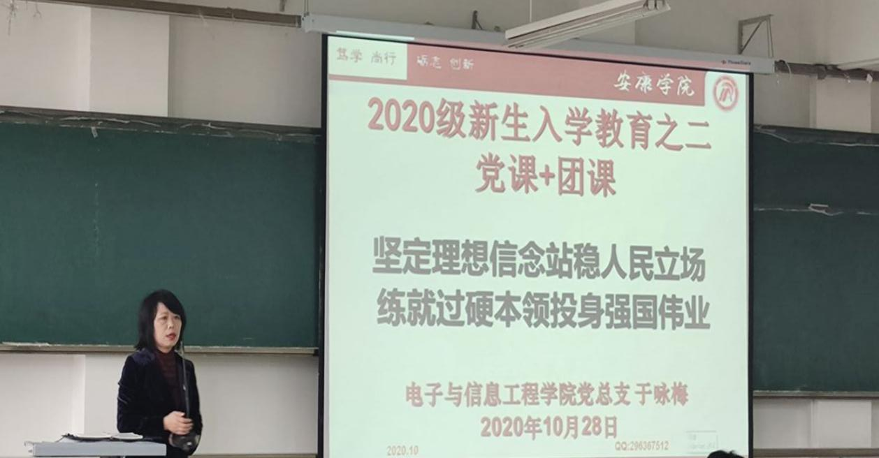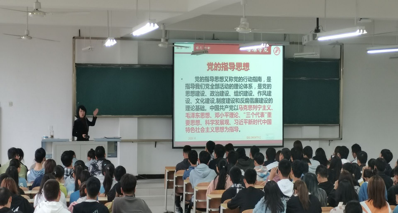10月28日,Bsports必一体育在江北1301教室开展了主题为“坚定理想信念站稳人民立场,练就过硬本领投身强国伟业”的入学教育第二讲,党总支书记于咏梅主讲,全体2020级新生参加。