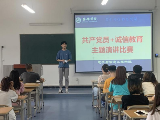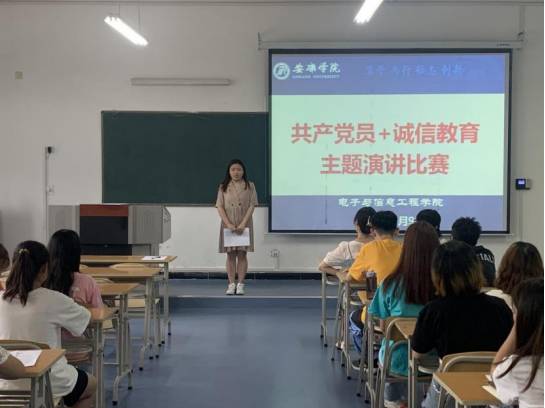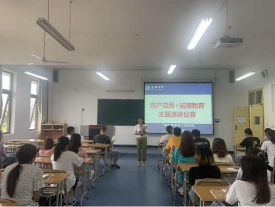 活动开始,员工第一党支部书记成英丽老师讲述了开展此次活动的目的和意义,要求各位中共党员通过此次活动深刻认识诚信做人、诚信做事的重要意义。紧接着,共产党员+诚信教育主题演讲活动开始,员工第一、二党支部全体中共党员有序依次上台,以“诚信”为主题给大家带来精彩演讲,赢得同学们阵阵掌声。