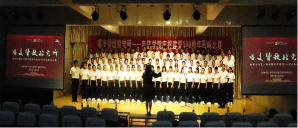 教工党员支部、员工党员支部分别合唱了《没有共产党就没有新中国》《歌唱祖国》《中国,中国,鲜红的太阳永不落》《让我们荡起双桨》《我和我的祖国》等红色经典歌曲。引导广大师生党员深入挖掘红色歌曲背后的党史故事,传承红色文化、赓续共产党人的红色血脉与革命精神。