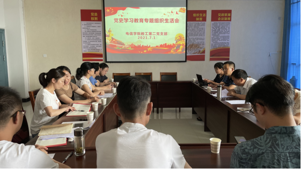 为扎实推进党史学习教育走深走实,切实提高学习教育的针对性和实用性,增强党员同志们的思想自觉和行动自觉,Bsports必一体育教工第二党支部于2021年7月1日下午召开党史学习教育专题组织生活会。会议由教工第二党支部书记余顺园主持,教工第二党支部应到会党员19名,实到会党员15名,因外出学习请假4人。