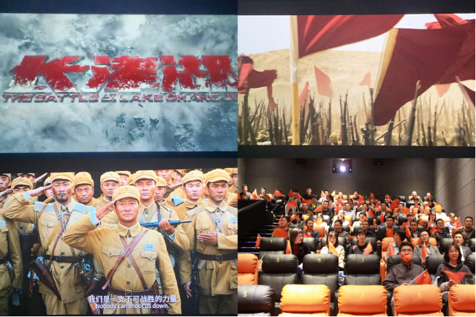 革命先烈始终坚定信仰,浴血奋战,为保家卫国壮烈牺牲的悲壮场景,让大家潸然泪下、肃然起敬。观影结束后,一起高唱《歌唱祖国》,在慷慨激昂的曲调里唱出了对祖国昌盛的美好祝愿,对中国共产党的衷心拥护,也唱出了永远跟党走的决心和信念。