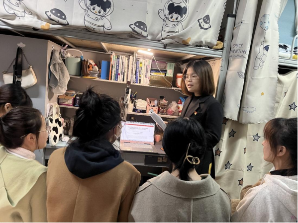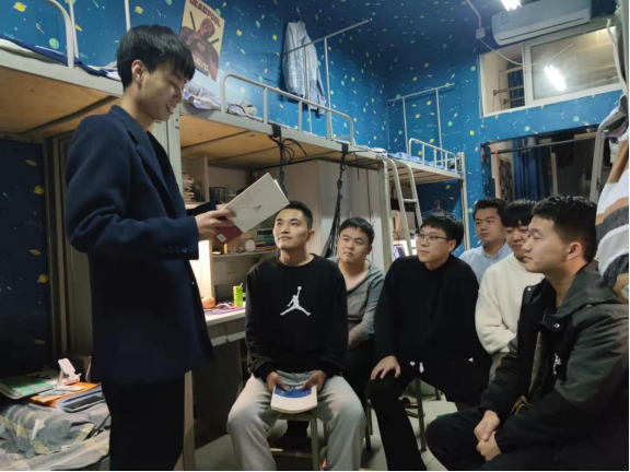 李赛凤、葛贝同志进入2021级新生宿舍,通过宣讲十九届六中全会精神及习近平总书记七一讲话精神,使同学们深入贯彻落实“四史”学习,使青年员工懂得今天幸福生活来之不易,坚定初心,砥砺前行,在伟大建党精神的激励下,争做中华民族伟大复兴的先锋力量。不忘初心,永远跟党走,肩负起“强国一代”的历史责任。