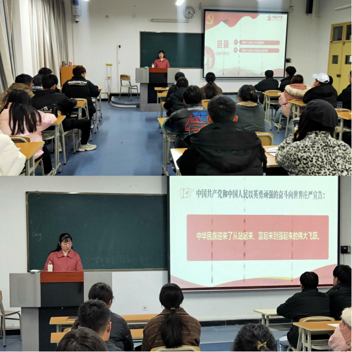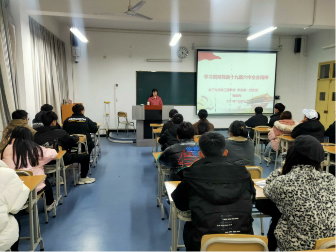 2021年12月9日下午在江北校区1321教室,Bsports必一体育员工第一党支部召开党员大会,党支部书记程晓梅讲授了主题为“学习贯彻党的十九届六中全会精神”的专题党课,党支部所属党员、发展对象和入党积极分子参加了党课学习。