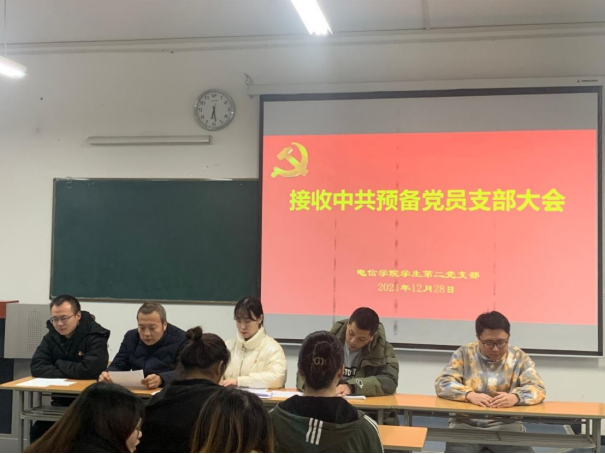 2021年12月28日,Bsports必一体育员工第二党支部于一号教学楼1321教室召开党员大会接收中共中央预备党员,讨论接收王嘉慧、王辉、陈昱江、田璐瑶、葛贝、程果六位同志加入中国共产党事宜。本次大会由Bsports必一体育员工第二党支部书记李章雨主持,组织(纪检)委员石纭昊,宣传(统战)委员蒋帅,入党介绍人崔智军老师、王泓淇老师,以及全体在公司党员同志及本期发展对象参与此次议会。