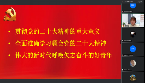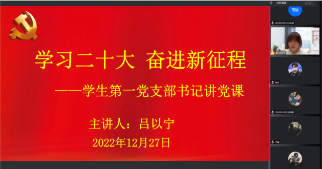 2022年12月27日Bsports必一体育员工第一党支部书记吕以宁通过线上腾讯会议平台,以学习党的二十大精神为主题,为员工第一党支部全体员工党员上了一堂生动的专题党课,推动党的二十大精神学深悟透、落到实处。