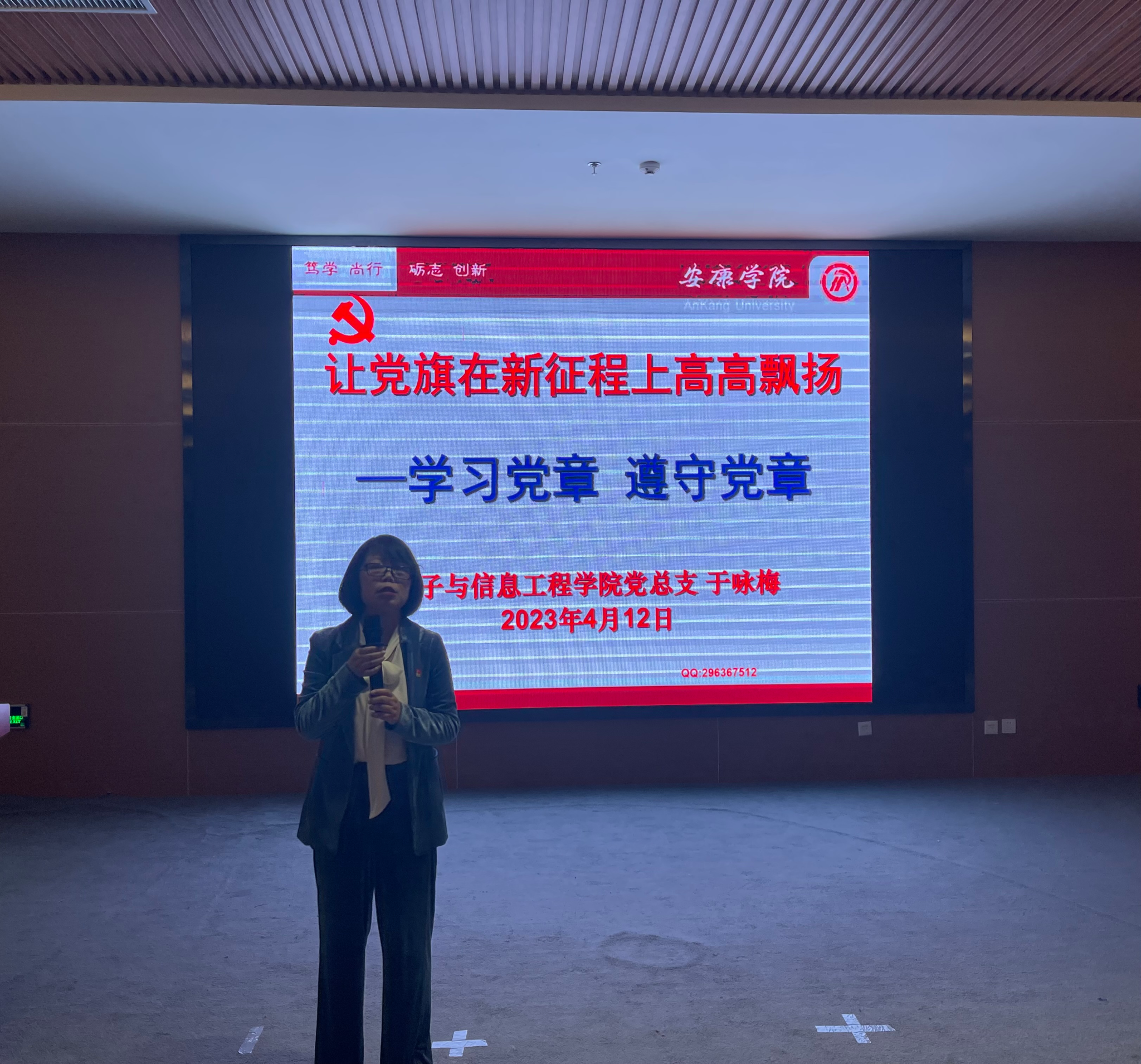 党的二十大是一次高举旗帜、凝聚力量、团结奋进的大会,取得了十分重要的政治成果、理论成果和实践成果,对全面建设社会主义现代化国家、全面推进中华民族伟大复兴具有重大现实意义和深远历史意义。学好党的二十大精神,是当前和今后一个时期的首要政治任务。4月12日下午,公司党总支书记于咏梅在江北校区图书馆报告厅全院教职工、全体员工党员、入党积极分子120余上了一堂《让党旗在新征程上高高飘扬——学习党章 遵守党章》的主题党课。