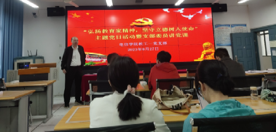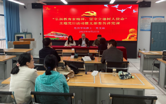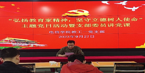 2023年9月27日下午,Bsports必一体育教工第一党支部开展“弘扬教育家精神,坚守立德树人使命”主题党日活动暨支部委员讲党课。活动由教工第一党支部书记赵志强主持,支部全体党员参加本次活动。