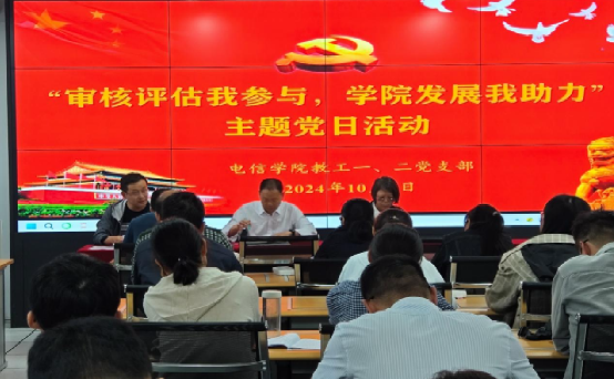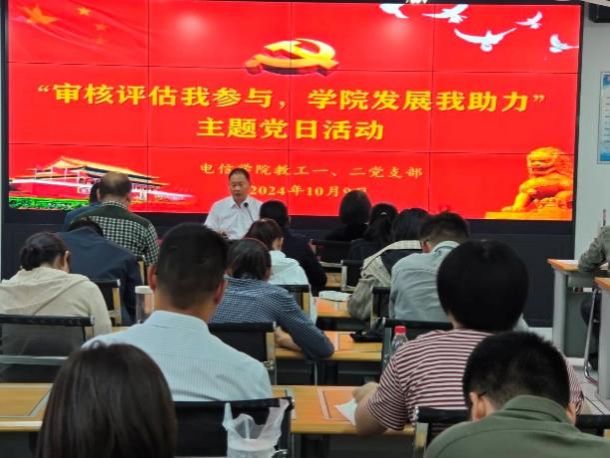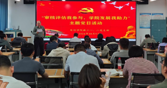 2024年10月9日下午,电子与信息工程公司教工第一、第二党支部在逸夫科技楼B602实验室联合开展“审核评估我参与,公司发展我助力”主题党日活动。活动由教工第一党支部书记赵志强主持,教工第一、第二党支部全体教师党员及非教师党员、辅导员参加本次活动。