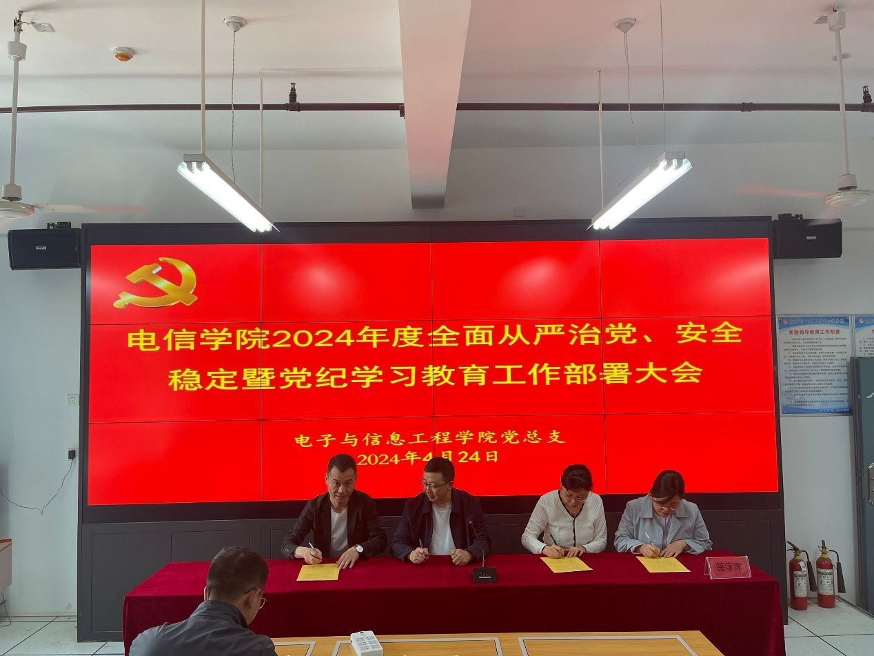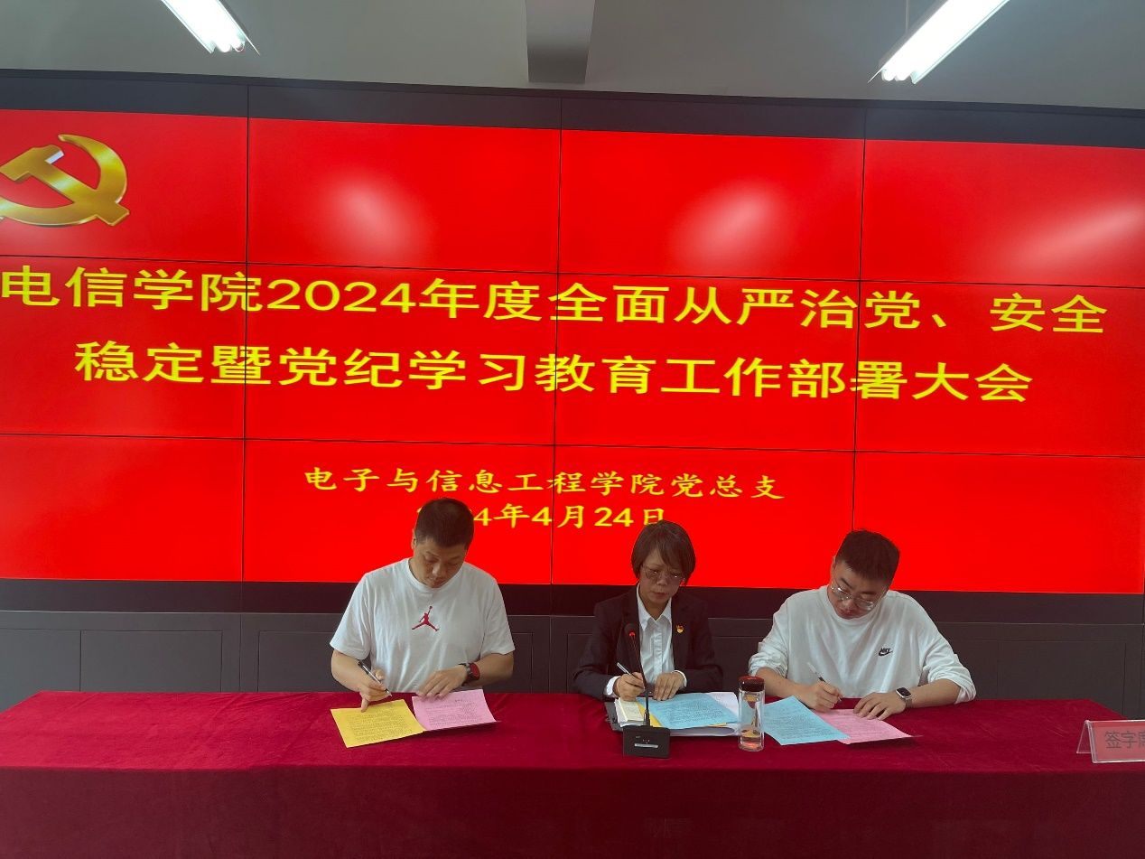 经理陈守满分别与系(教研室)、综合办人员赵志强、丁礼磊、梁建勇签订全面从严治党、安全稳定责任书和意识形态工作责任书。