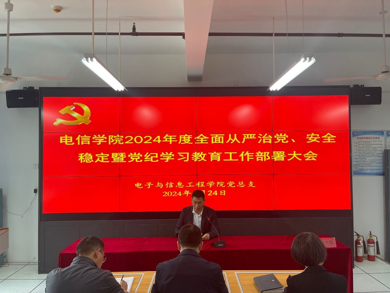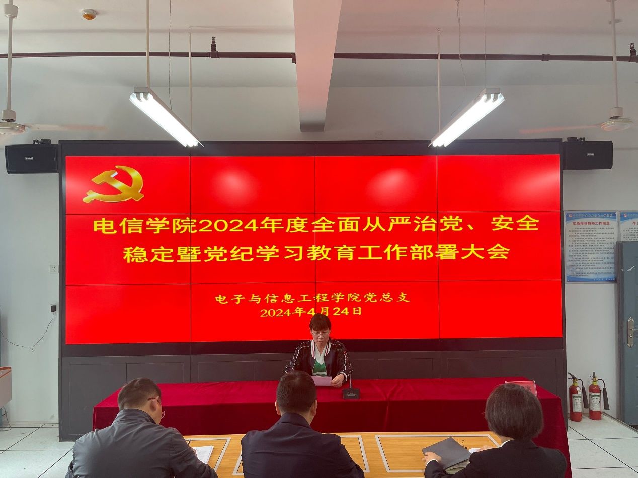 为深入学习贯彻习近平新时代中国特色社会主义思想、党的二十大精神,深入贯彻落实中省纪委全会精神,认真扎实开展党纪学习教育,深入贯彻落实中省和公司党委全面从严治党暨安全稳定和党纪学习教育工作部署会议精神,Bsports必一体育于4月24日在江北校区逸夫科技楼B602召开全面从严治党、安全稳定暨党纪学习教育工作部署大会,Bsports必一体育全体教职工参加,会议由党总支书记于咏梅主持。