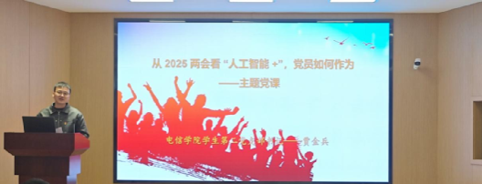 最后,公司党总支书记于咏梅为与会人员讲了一堂生动的微党课。她结合党的二十大报告、2025年全国两会以及政府工作报告详细讲解了AI技术对于国家发展的战略意义,号召电信学子勇担“科技报国”的重任,并且提出五点希望:一是筑梦科技潮头,立志报国铸魂;二是深耕专业知识,锤炼强国本领;三是勇攀科技高峰,探索创新之路;四是聚焦社会需求,科技惠及民生;五是彰显党员风采,贡献青春力量。