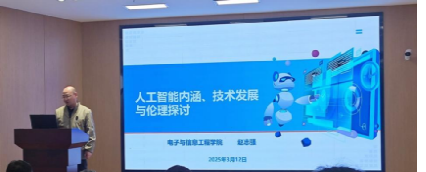 接着,教工第一党支部书记赵志强按照“五联五做”工作要求,认真落实结对工作,做员工党员成长的呵护人。他以《人工智能内涵、技术发展与伦理探讨》为题做了一场专题报告。他从人工智能的历史发展讲起,详细阐述了从低谷到突破性进展的艰辛历程,并着重介绍了当前人工智能技术的蓬勃发展,如机器博弈智能、机器创造智能等领域的创新应用。他还深刻剖析了人工智能技术的伦理问题,探讨了人与智能系统、智能机器之间的新型道德关系。他强调,在推动人工智能技术发展的同时,必须坚守伦理道德底线,确保技术发展成果惠及全人类。与会人员通过聆听报告不仅加深了对人工智能技术的理解,也为个人如何学好、用好人工智能技术,赋能党建和员工工作打下了基础。