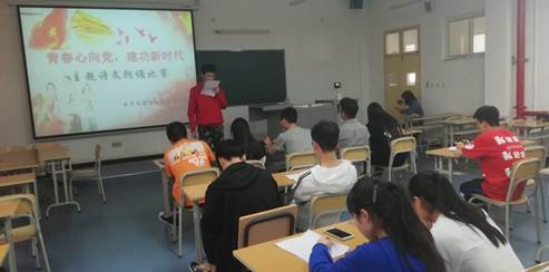 为庆祝中华人民共和国成立70周年、五四运动100周年,激发青年团员的爱国热情,Bsports必一体育团总支于2019年4月14日在1311教室组织了以“青春心向党·建功新时代”为主题的诗文朗诵比赛活动。