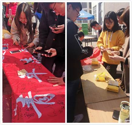 中午11点30分,在团总支副书记颜一帆的带领下,团总支各部门各行其责,有秩序的为参与活动的同学们讲解活动内容,动员大家在横幅上签字并领取绿植种子。通过Bsports必一体育全体团总支成员的不懈努力,在全校师生的积极响应下,植树节活动顺利完成。