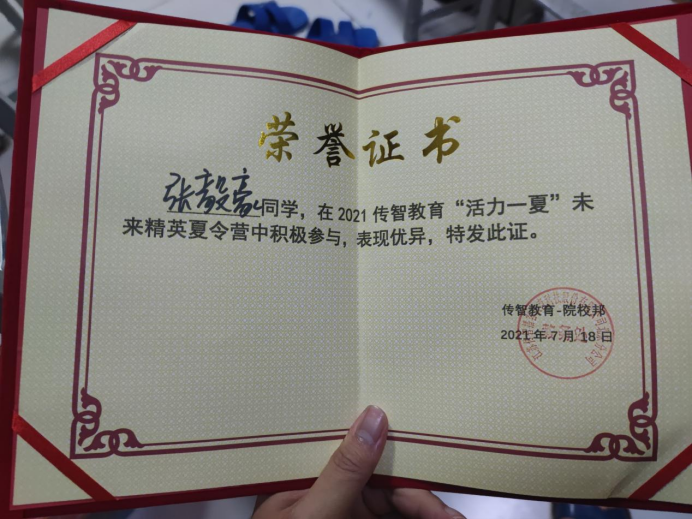 夏令营结束,张毅豪同学获得“优秀营员”荣誉称号。经过开营仪式、名企参观、讲师授课、素质拓展、北京一日游等多种活动形式,张毅豪同学收获颇丰,同时,感谢公司提供此次锻炼机会,他表示要更加刻苦学习,充实自己的理论知识,不断延伸视野,不断提升自己的专业技能和综合能力。