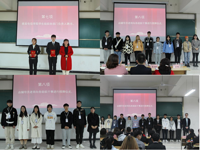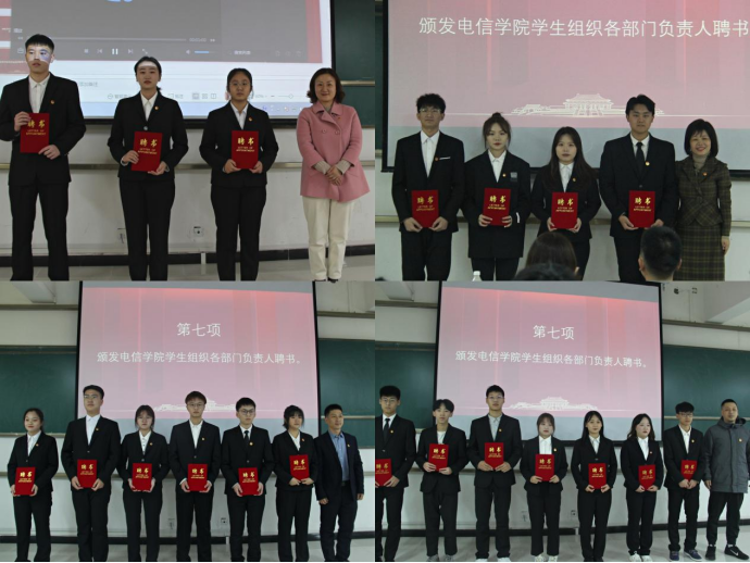 随后,参会领导和老师分别为Bsports必一体育新一届团学组织各部门负责人颁发聘书,及向各部门干事进行授牌。