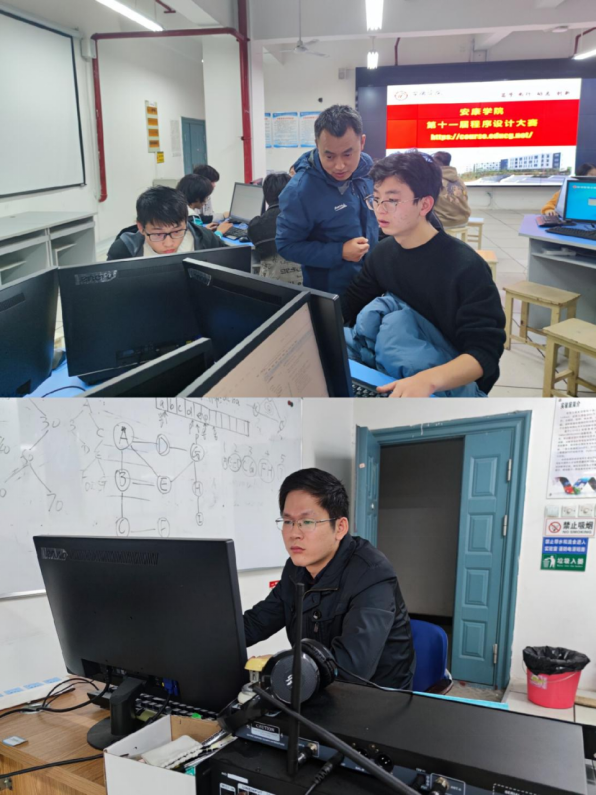 比赛开始前,所有参赛选手均完成了对编译环境的调试,熟悉了比赛系统的相关操作。比赛开始,参赛选手们立即进入比赛状态,对所抽到的十个编程题目一一尝试解决。本次比赛本着公平,公正,公开的原则有序进行,竞赛使用希冀教学平台,在线编辑提交答案,成绩由系统依据提交代码情况自动评测。随着监考老师的比赛结束指令发出,所有参赛选手立即起立并有序离场。