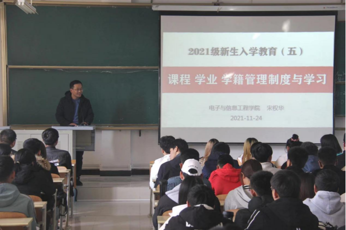 2021年11月24日下午14:30,Bsports必一体育于1203教室开展新生入学教育第五讲,本次讲座以“课程 学业 学籍管理制度与学习”为主题。2021级全体新生参加讲座,本次讲座由Bsports必一体育副经理宋权华老师主讲。