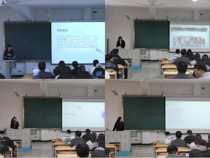 答辩过程中,各班班长进行述职答辩,他们详细且严谨的介绍了自己班的情况,具体内容涵盖:班级概况、思想引领、学风建设、竞赛获奖情况、文娱活动以及未来工作展望等方面。答辩同学各具所长,过程精彩纷呈。通过流畅的陈述和自信的精神面貌向老师和同学们充分展示自己所在班级的风采。通过答辩,展示出了不同班级的不同特色。有的班级通过举行团建、班会等进行破冰,调动同学们积极性,丰富老员工活,以此来提高班级凝聚力;有的班级注重课业帮扶、营造良好的学习氛围、积极响应公司组织的各类专业竞赛,以“扎实专业功底,强化专业技能”作为班训;部分班级在重点汇报各项工作开展情况的同时,也强调了关于电信诈骗的宣传与落实、消防安全知识的认识与总结等公司重点关注的员工工作。在场其他同学仔细聆听、互相借鉴,学习答辩经验。