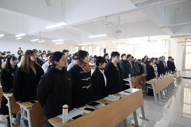 会议在慷慨激昂的国歌声中拉开序幕。接着,任珂伊就本次会议的具体流程、会议内容、答辩要求作了详细的介绍。