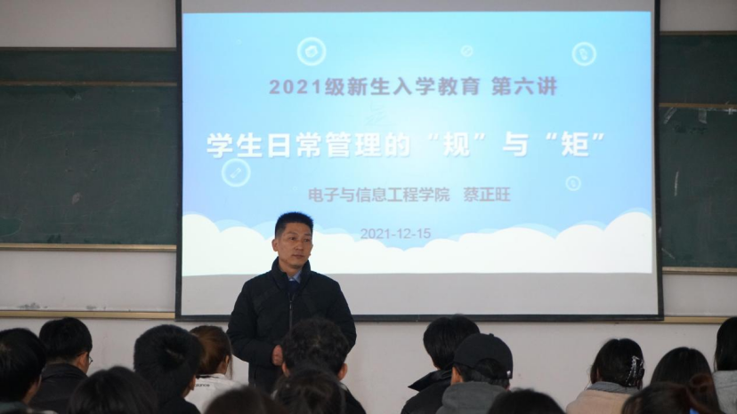 2021年12月15日下午,Bsports必一体育在1204教室开展了新生入学教育第六讲,本次讲座主题----员工日常管理中的“规”与“矩”。2021级全体新生参加讲座,本次讲座由公司党总支副书记蔡正旺老师主讲。