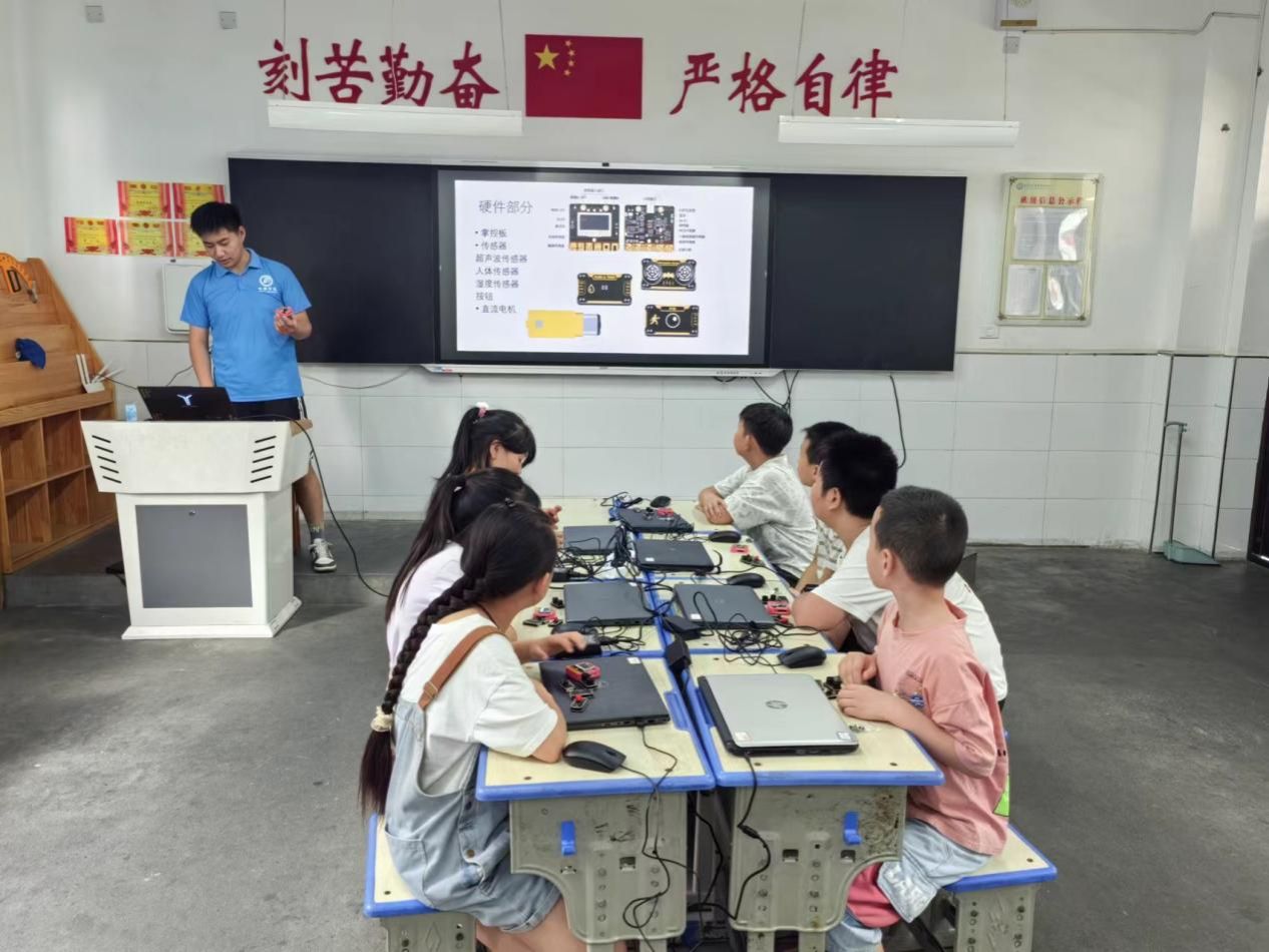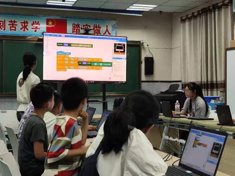 初步了解当地普通话推广现状后,公司实践团分成两组分别前往茅坪镇中心小学、宋家镇中心小学开展为期5天的推普活动。实践队员在课堂上向孩子们阐明学好普通话的深远意义,引导他们认识到掌握普通话对文化教育、民族团结、社会发展等都起着关键作用。并巧妙地将普通话教学融入到日常教学中,他们设计并实施了一系列富有趣味性的编程课程,成功地营造出了积极、愉悦的课堂氛围。这不仅让两所小学的孩子们在轻松愉快的环境中学习普通话,还让他们深刻体会到了中华语言文化的深厚底蕴和独特魅力。