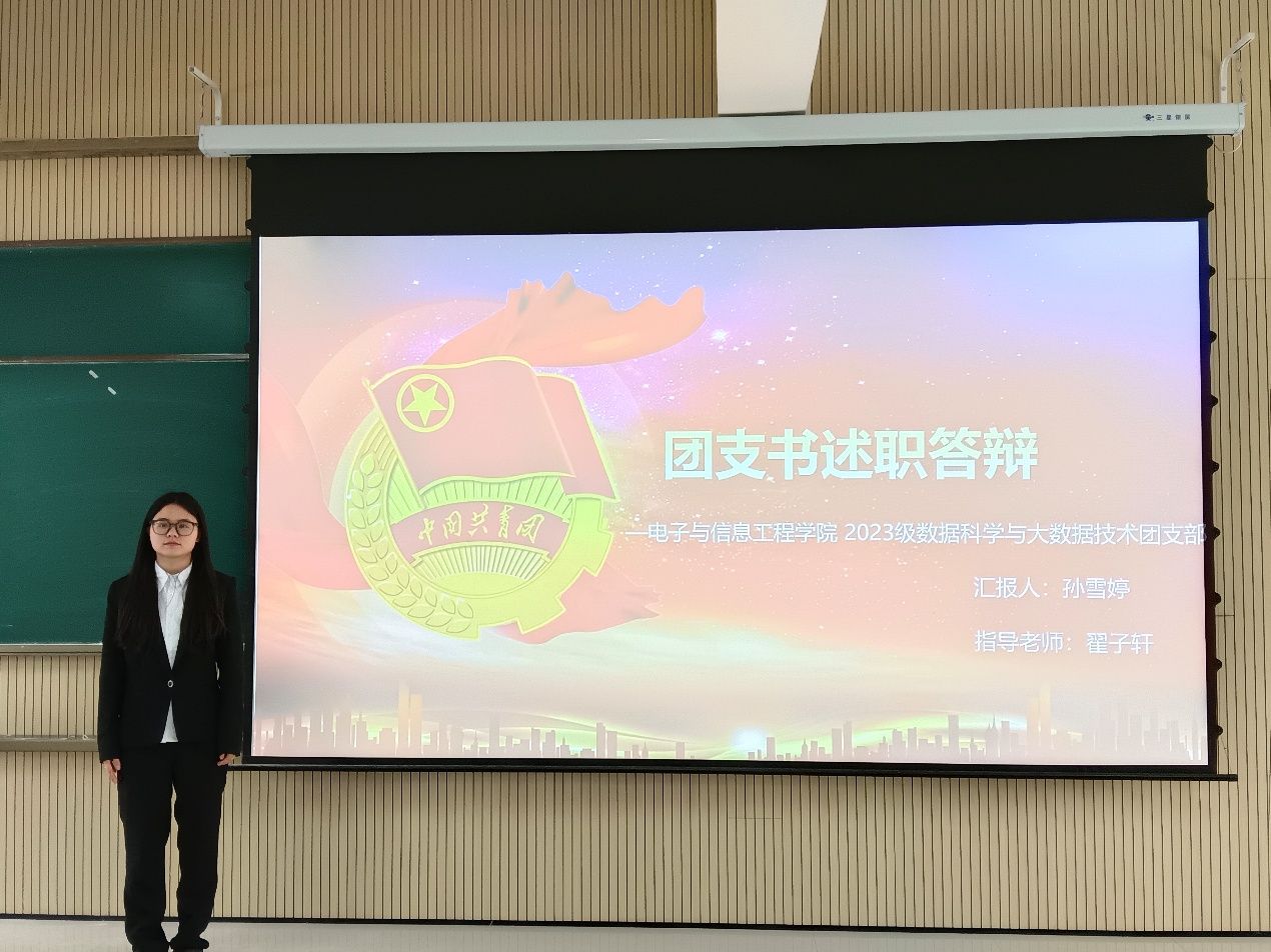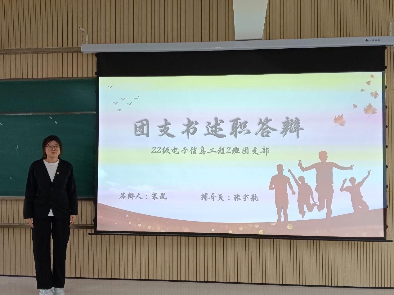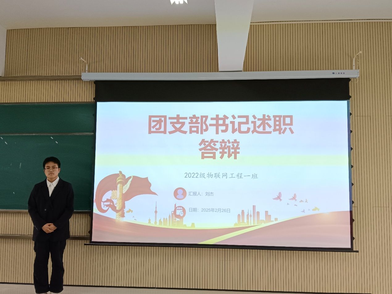 紧接着,进入团支书述职答辩阶段。各班团支书围绕自身职责,细致汇报了支部成员思想状况、团日活动开展、无手机课堂推进、青年大学习完成情况以及其他团务工作进展。通过丰富多样的主题团日活动,团支书们有效引导同学们深入学习党史,推动支部思想建设取得显著成效,有力保障了各项团务工作的顺利开展。答辩时,团支书们表达清晰、自信大方,充分展示了团支部的工作成果。台下同学们认真聆听、积极思考,相互交流答辩收获,在思想碰撞中收获满满。