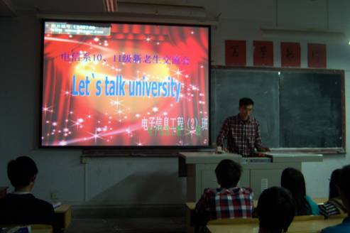 10月13日晚,电子与信息工程系团总支在1号教学楼2011级新生自习室举行了新老生经验交流会,活动主题为“给你一块基石,让你看得更远”,旨在帮助新生解决新环境带来的迷茫和困惑,让他们能尽快熟悉大公司园生活和学习。