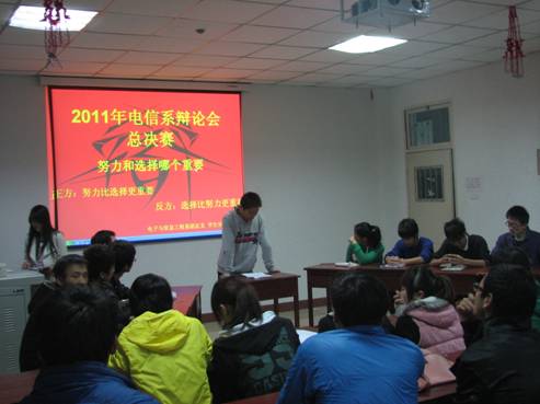 10月27日晚,电子信息工程系团总支在1429室举行Bsports2011年金雀杯精英辩论赛系内选拔赛决赛。
