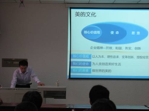沈经理通过专题片《美的世界》介绍美的集团,还就此次招聘的职位、要求、招聘人数等进行了详细的介绍,并现场回答了同学们就待遇、假期、培训、职务晋升等方面的问题。电信系石纭昊老师希望同学们从实际出发,合理定位,既不能缺乏自信心,也不能期望值过高,这样才能更好的选择。