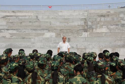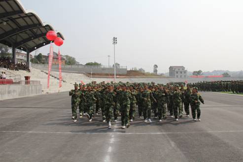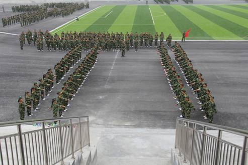运动场上,2013级的新生们个个穿着整齐的军服,正在骄阳下稍息、立正、站军姿、走正步。烈日炎炎,同学们汗流浃背,但仍然坚持训练下去。在她们心中有一个坚定的信念,那就是坚持,坚持,再坚持。同学们清楚的知道军训是老员工活中的第一课,是他们锻炼体魄、增强体质、磨练意志、加强集体荣誉感、培养良好行为习惯的宝贵经历,是把自己融入到新集体的一次难得的机会。因此在此次军训中他们都倍感珍惜。与此同时,他们也懂得了许多国防知识,培养了团队精神,增强了国防意识。