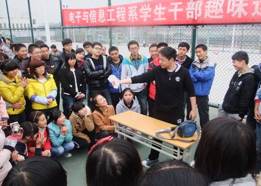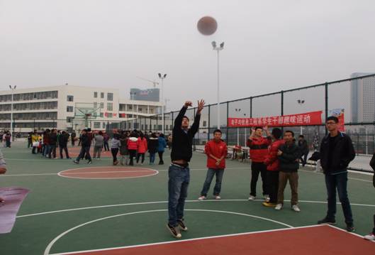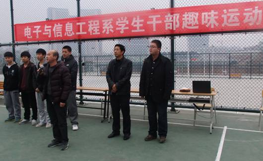 2013年12月8日,电子与信息工程系在江北校区篮球场举行员工干部趣味运动会,出席活动的老师有系党总支书记李红兵、团总支书记石纭昊以及辅导员王贵新。