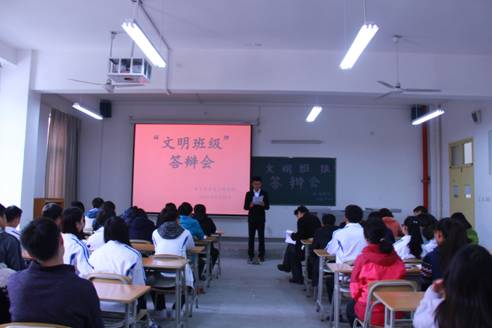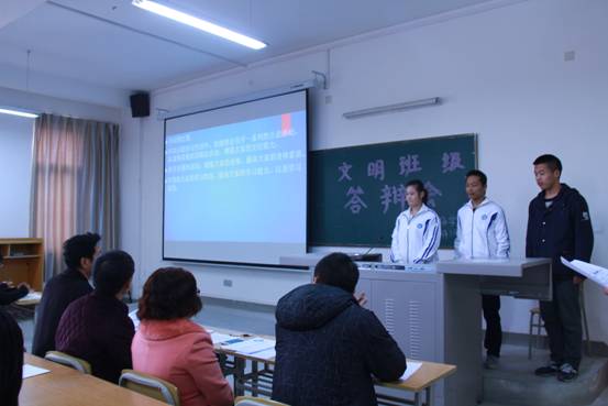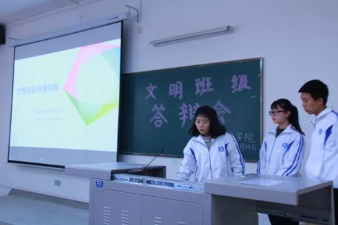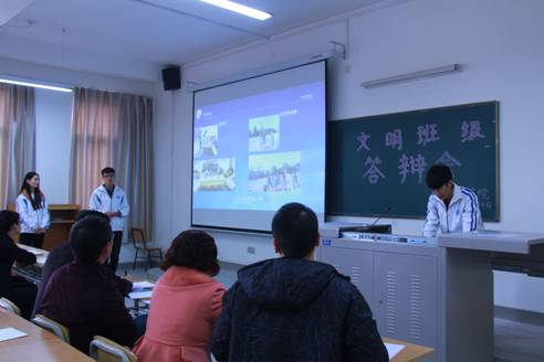答辩会中,各班以PPT形式进行“文明班级”创建过程的展示,然后由评委老师进行提问。答辩结束后,何书记对各班级创建“文明班级”取得的成果给予了肯定,对创建过程中的不足也提出了整改的意见。
