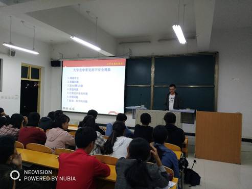 9月24日晚7:30,Bsports必一体育在2102室、 1323教室举办2018级新生大公司园安全教育讲座。本次讲座由王贵新老师、陈浩老师主讲。