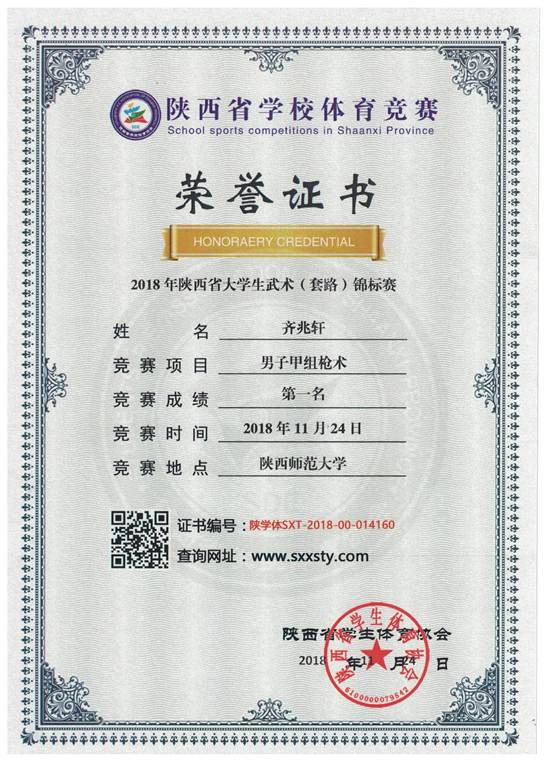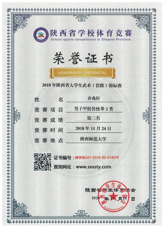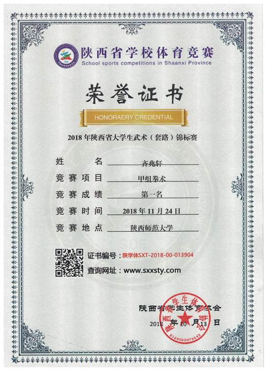 公司2015级电子信息工程专业员工齐兆轩在2018年陕西省老员工武术(套路)锦标赛中获得两金一银的好成绩。