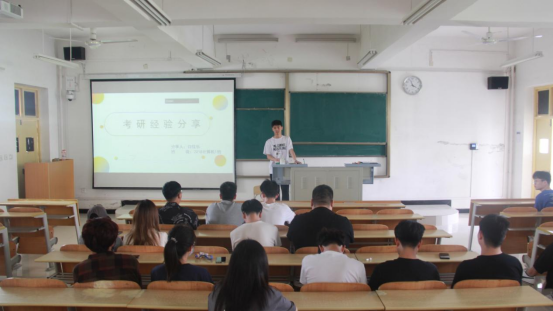 分享会开始,白佳乐同学以自己的考研经历为基础,从考研初心、院校选择、备考规划、心态调整四个方面给备考同学提出了一些建议。他讲到:“考研应该是发自内心的,而不是从众心理所导致的”,并且告诉同学们不论在考研的哪一个阶段,都应有自己的主见,不随波逐流,这样才能大大提高考研的成功率,并以“时间从来不语,却能给你所有问题的答案”这句话预祝备考员工都能成功上岸。